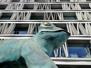 You were very quick to find the answer this week: yes, the picture represents the sculpture of the big green frog in Plaza de Colón, just in front of the Casino. The sculpture was inaugurated in 2014, ast the same time than the Casino (Gran Casino Madrid entrance is just behind the statue), as the frog is a gift from the Casino to the city of Madrid. And it´s green, because is the color of luck:)